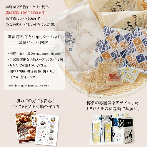 こちらの商品は博多若杉牛もつ鍋3〜4人前セットです。